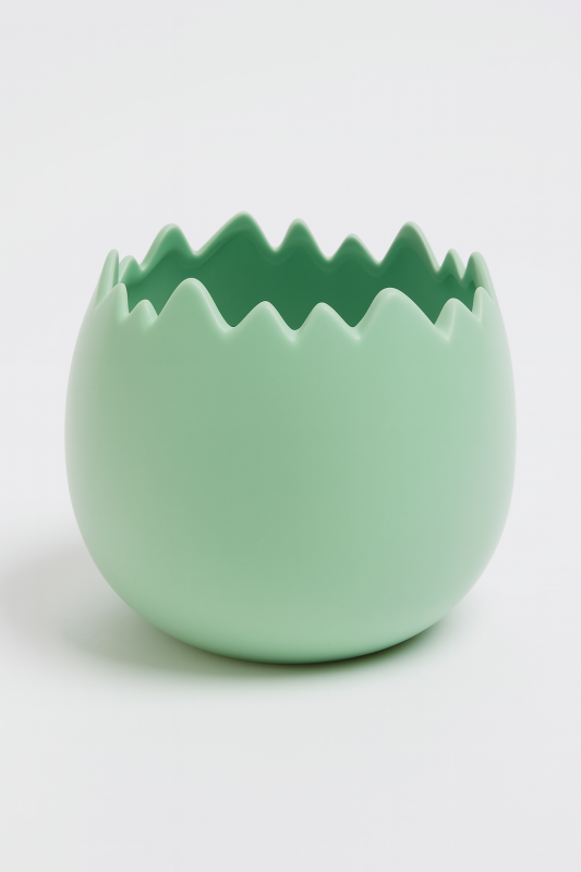 Der "Eibruch" Übertopf aus Keramik überzeugt mit seiner einzigartigen Form – einem aufgebrochenen Ei.