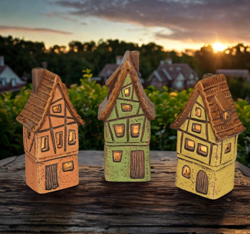 Dieses liebevoll gestaltete LED Fachwerkhaus aus Keramik bringt nostalgischen Charme und gemütliches Licht in Ihr Zuhause. Mit seinen detailreichen Fachwerkstrukturen und der warmen Beleuchtung erinnert es an kleine, romantische Altstadtgassen und schafft eine besonders einladende Atmosphäre.