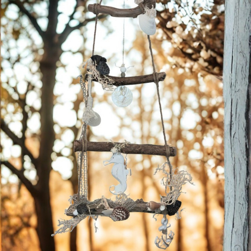 Die Holzleiter maritim (90 cm) ist ein dekoratives Highlight für dein Zuhause und bringt maritimen Charme in jeden Raum. Sie ist detailreich gestaltet mit Seepferdchen, Ankern und liebevoll ausgewählten Naturmaterialien.