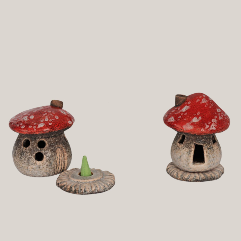 Dekorativer Keramik-Räucherpilz, 11,3 cm hoch, in zwei Varianten. Ideal für Räucherkerzen – sorgt für stimmungsvolle Wintermomente.