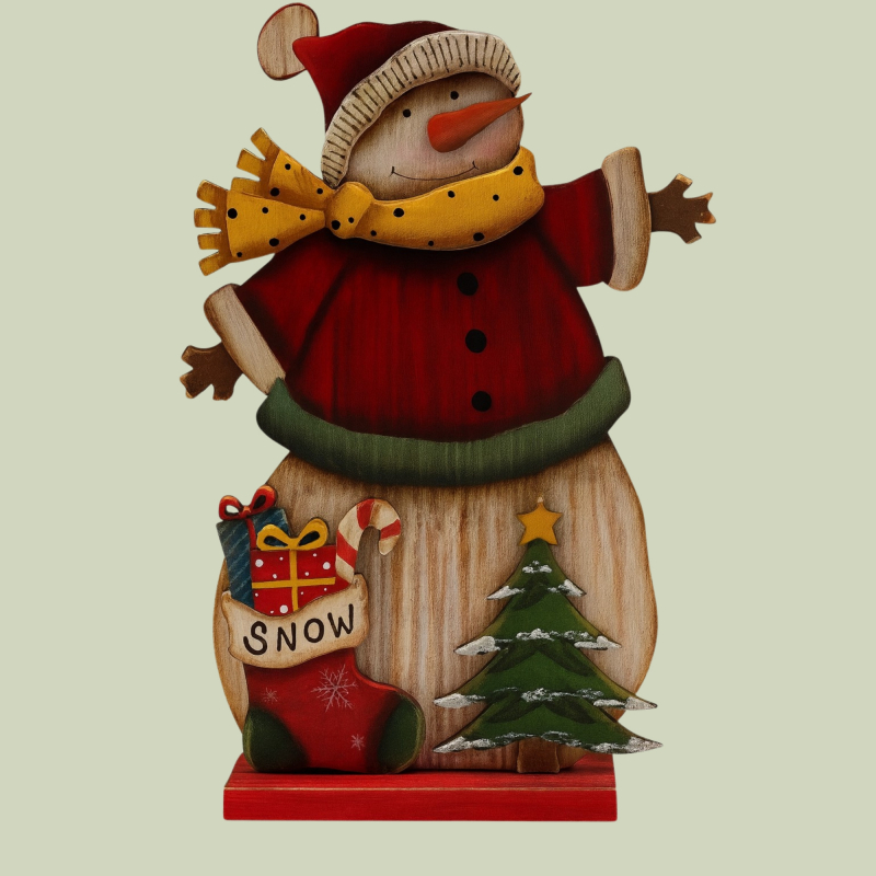 Holz-Aufsteller von Seyko, 32,3 cm, mit Schneemann, Stiefel & Bäumchen – die perfekte Ergänzung für Ihre festliche Weihnachtsdekoration.