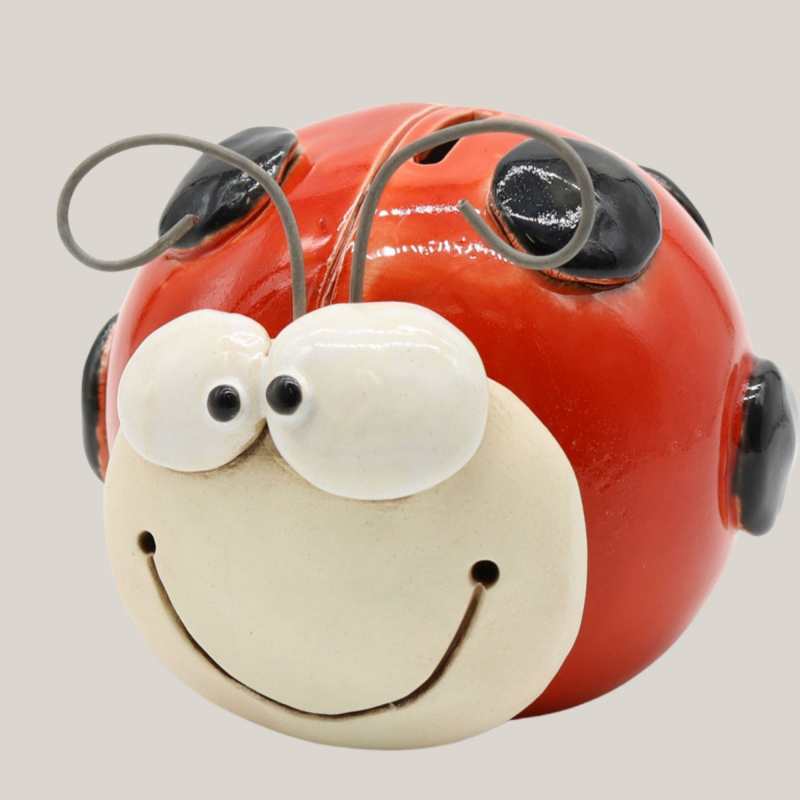 Spardose „Marienkäfer“ – 9 cm große, fröhliche Keramikfigur in Rot . Perfekt als lustige Geldgeschenk-Idee oder originelle Deko.