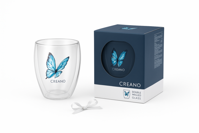 Doppelwandiges Isolierglas mit Schmetterlings-Motiv & Schwebe-Effekt. Spülmaschinenfest, mikrowellengeeignet & stoßfest.
