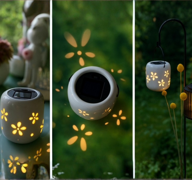 Das GardenJoy Teelicht Tradino von Tiziano ist ein wunderschöner, cremeweißer Teelichthalter aus hochwertiger Keramik mit praktischem Henkel.Mit einem Durchmesser von ca. 8 cm bringt es warme, stimmungsvolle Lichtakzente in Ihr Zuhause oder den Garten.Das Kerzenlicht scheint durch die filigranen Auslässe in Blütenform und schafft zauberhafte Schattenspiele – ideal für romantische Abende, gemütliche Terrassenstunden oder als stilvolle Tischdekoration.Dank des Henkels lässt es sich mühelos bewegen und platzieren, auch wenn das Teelicht brennt. Pflegeleicht, witterungsbeständig und perfekt als Geschenk oder Ergänzung Ihrer Deko-Kollektion.Lieferung ohne Gartenstecker.